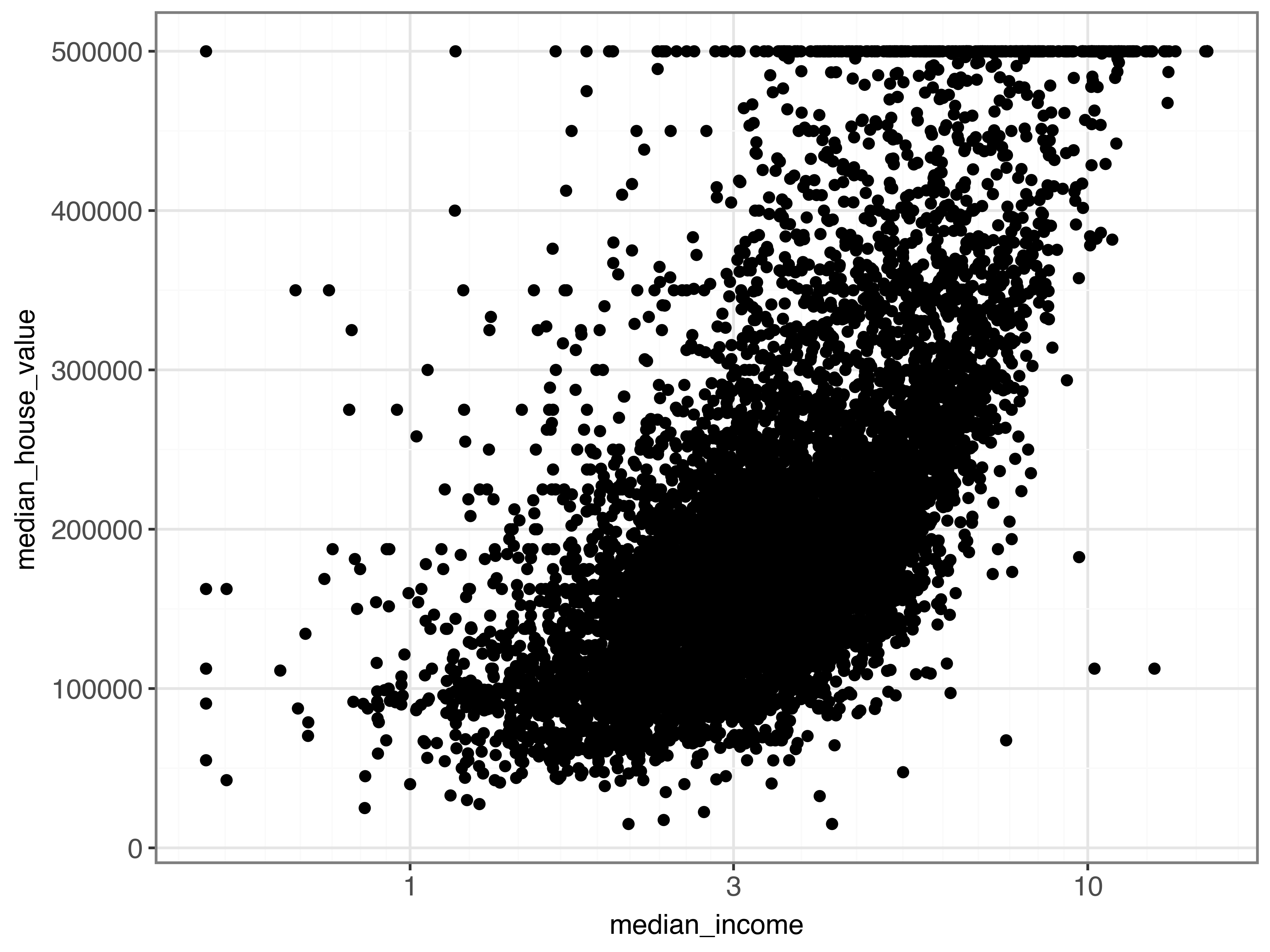 p9.ylab("median_house_value") + p9.scale_x_log10() +