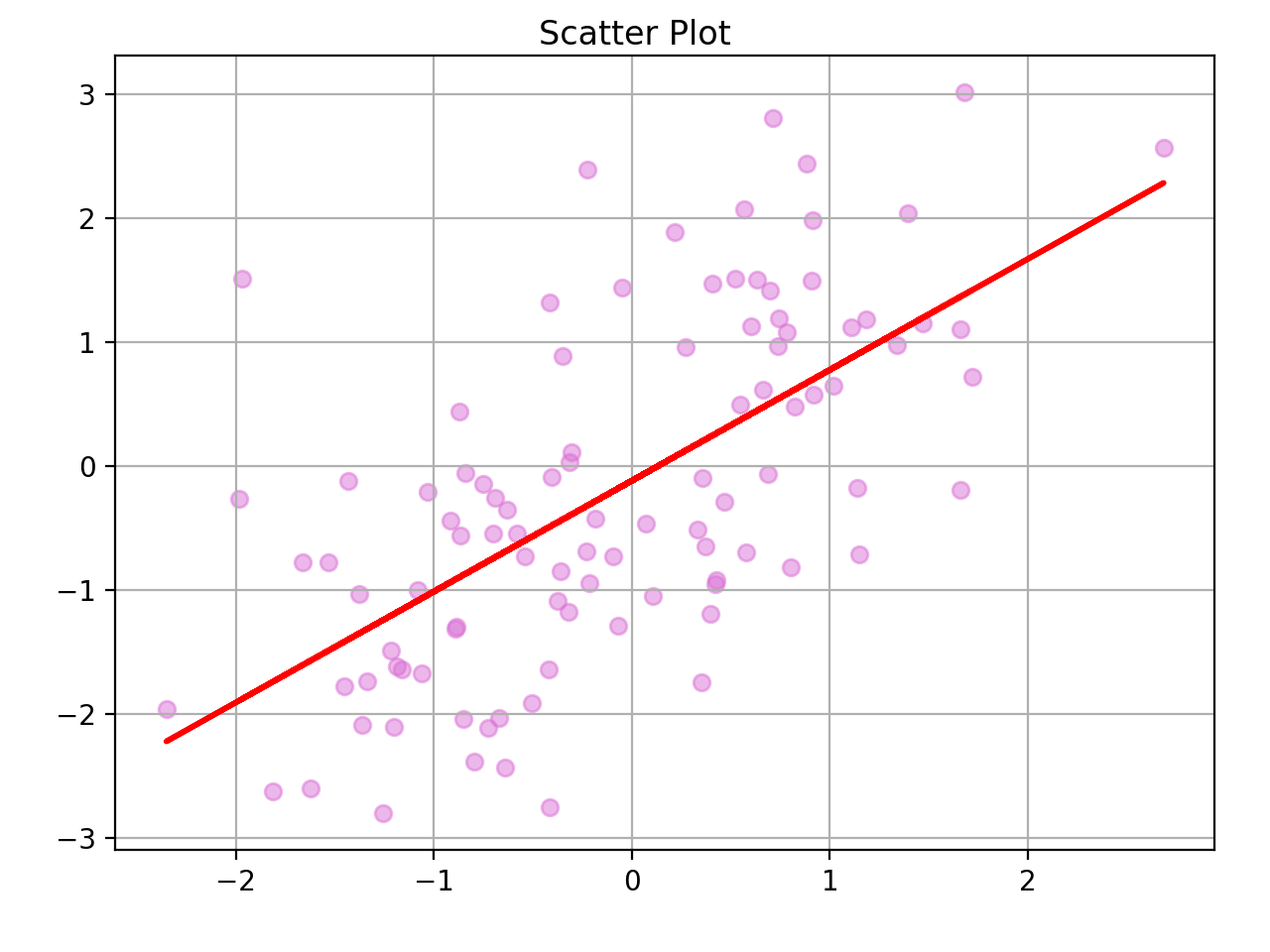 The most commonly used plot is the scatter plot, see the following scripts that generate random number and plot
