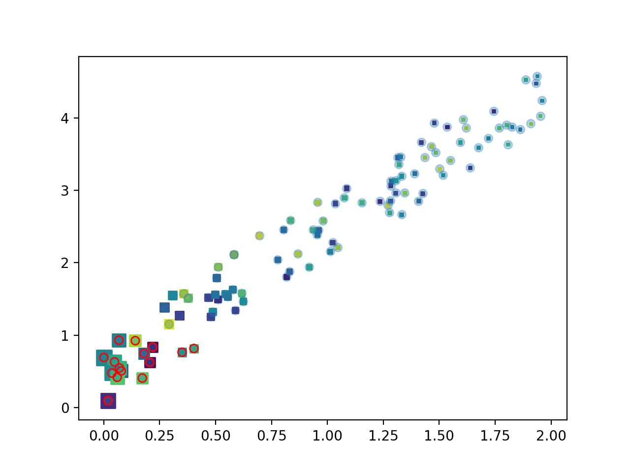 plt.scatter(x, y, s=20 /(x+.4)**2 , c=colors, marker="s")