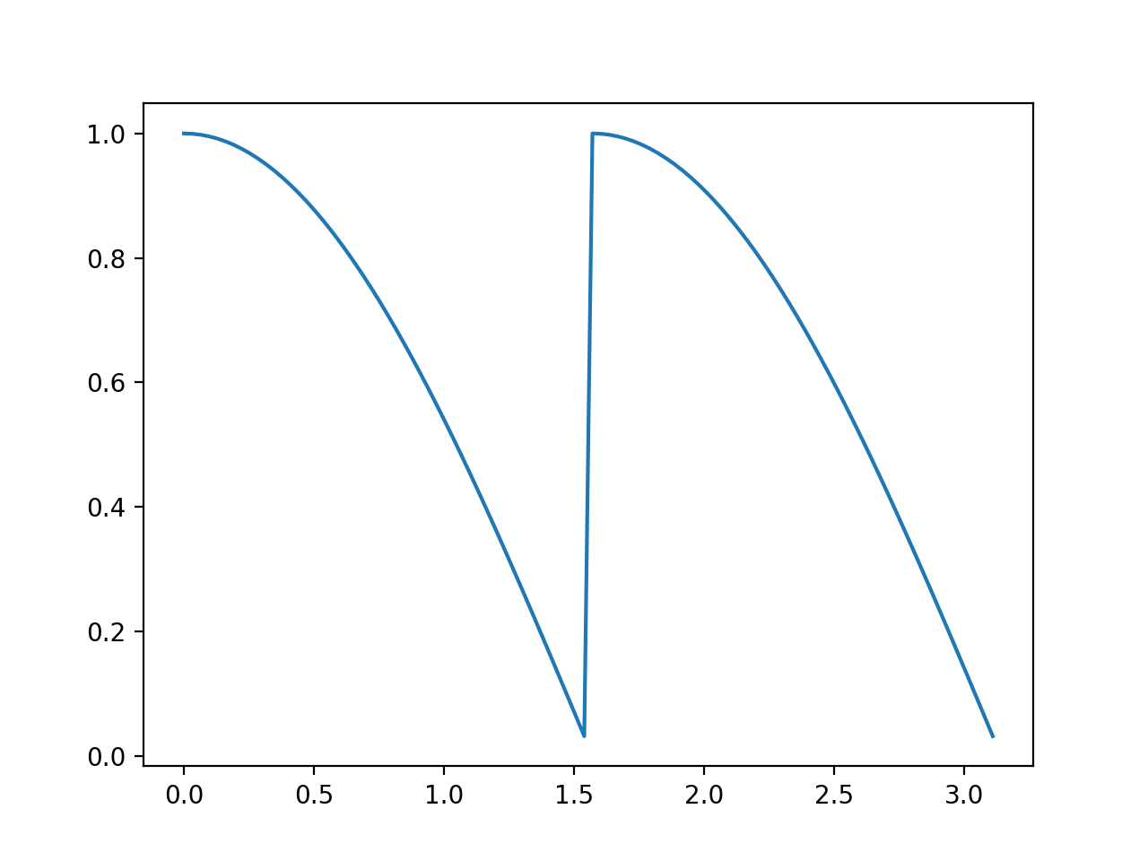 y=np.where(x<np.pi/2,np.cos(x),np.sin(x))