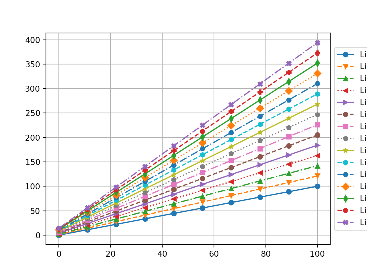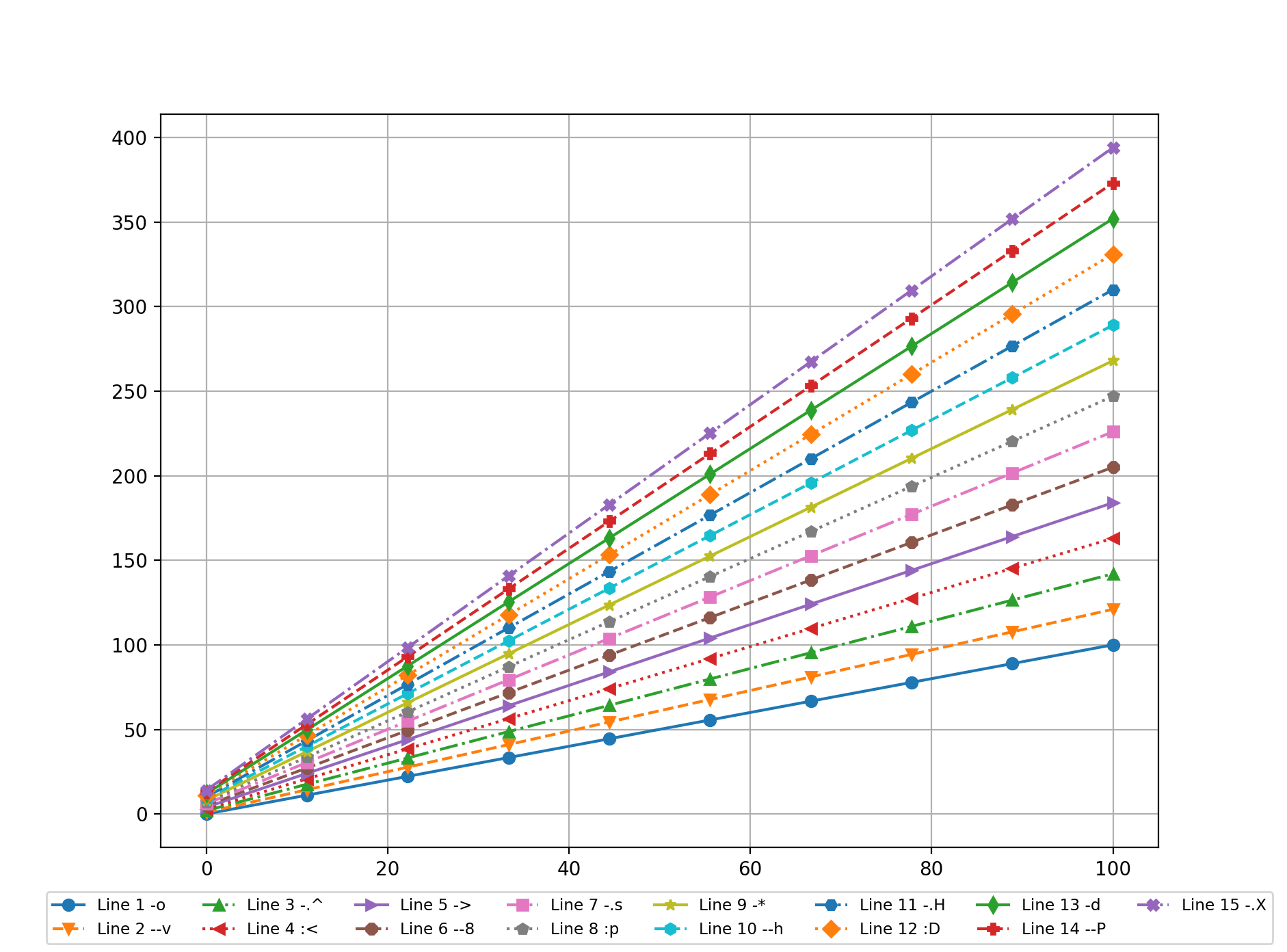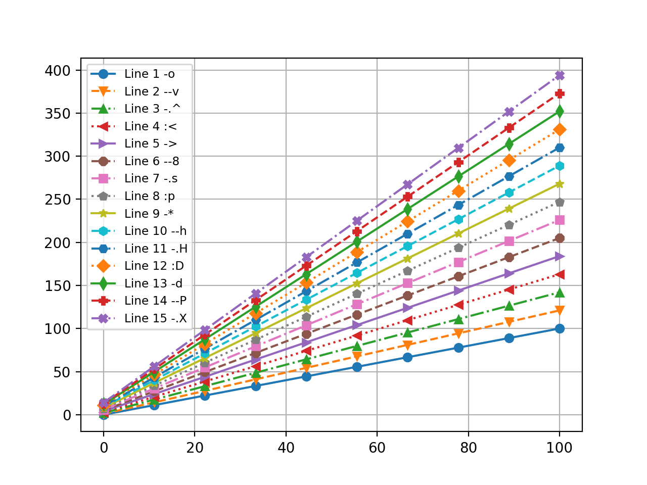 plt.plot(x, y,label='Line '+str(i+1)+' '+st+ma, marker=ma,linestyle=st)